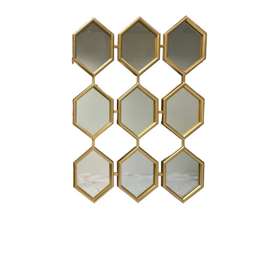 Featuring a series of hexagonal mirrors framed in a warm gold finish, this decorative wall mirror adds visual interest and contemporary flair to your space. The interconnected design creates a sense of movement and symmetry, perfect for adding dimension to living rooms, entryways, or above a console.